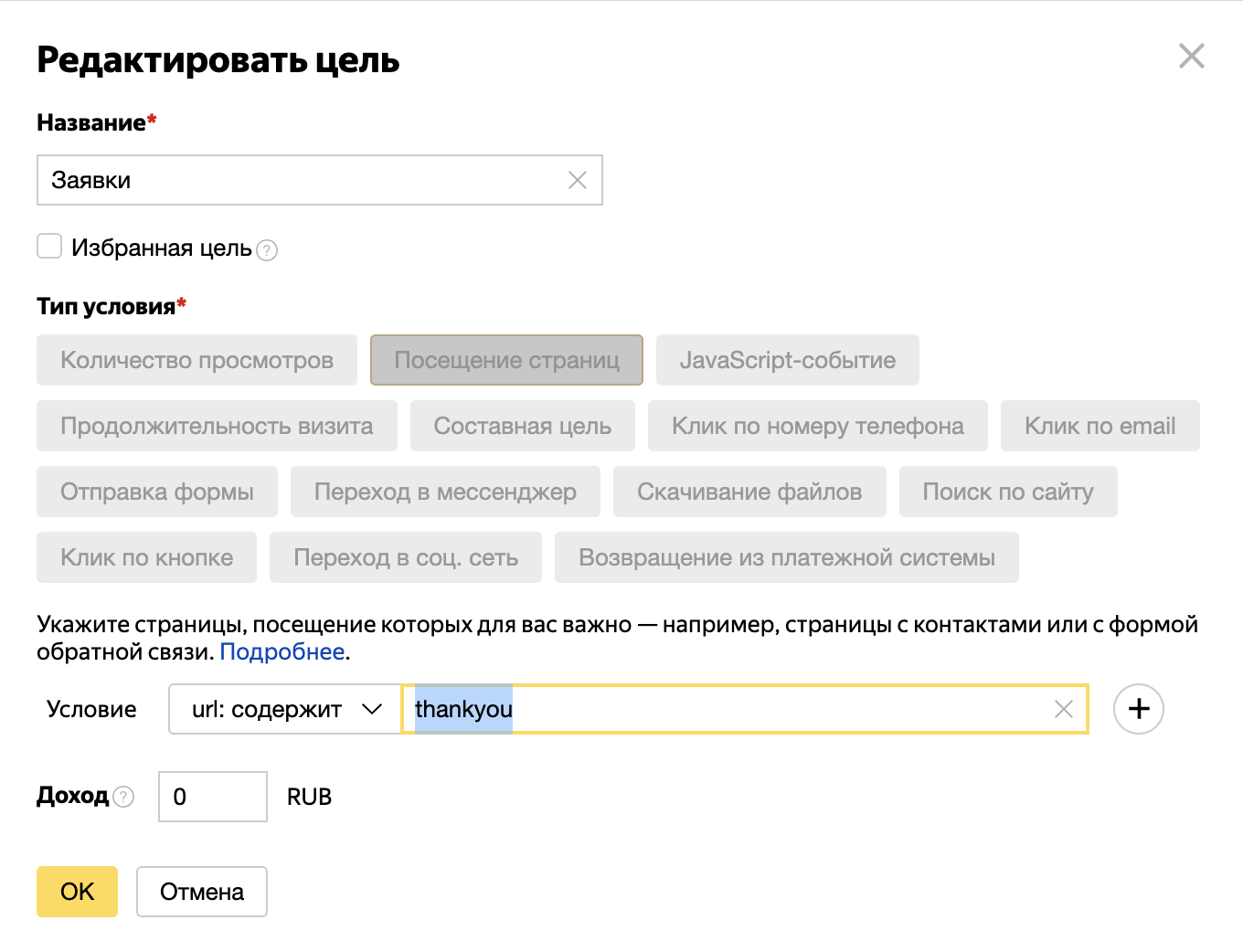 Как настроить цели в Метрике